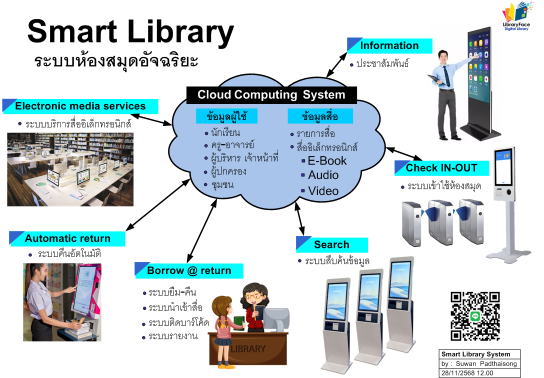 - ระบบการยืม-คืนรองรับแถบรหัส บาร์โค้ด และ หรือ RFID ร่วมกันได้