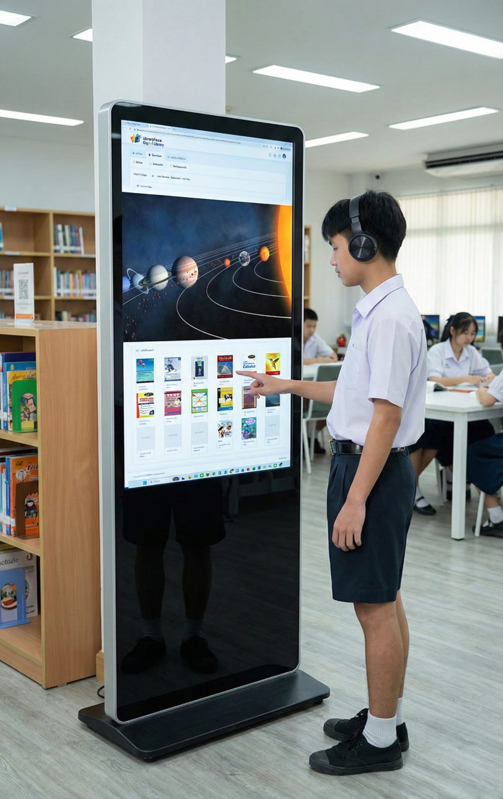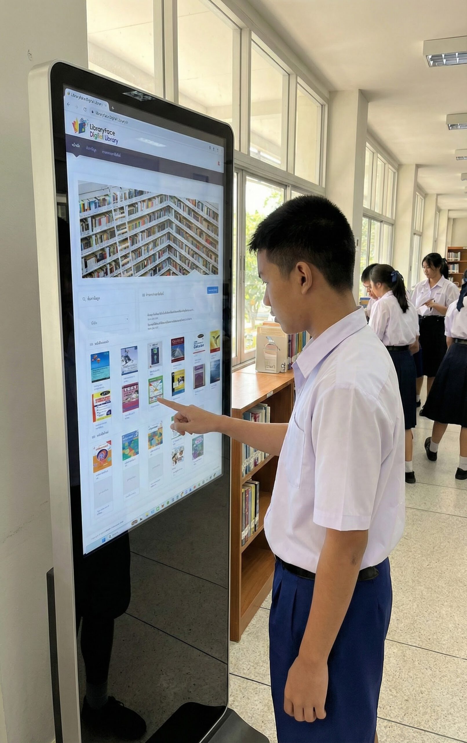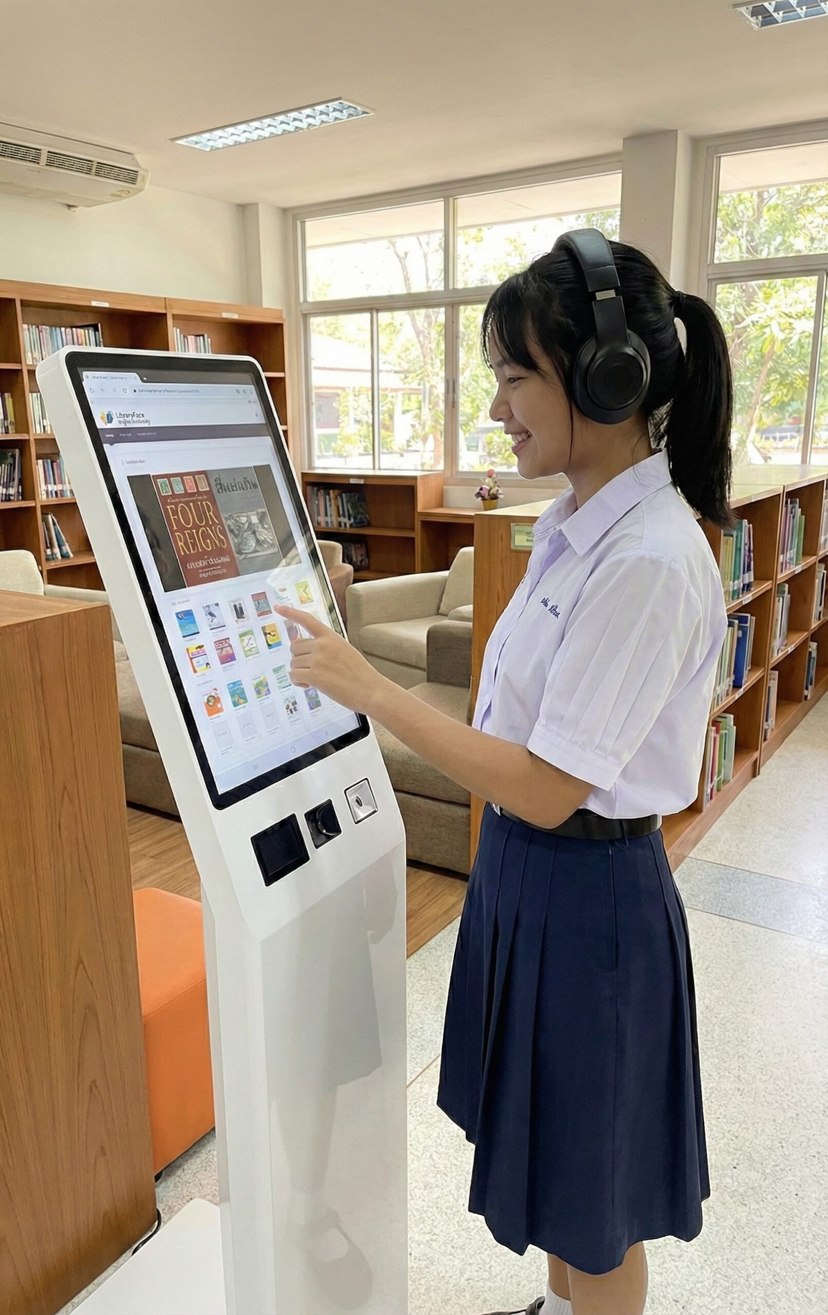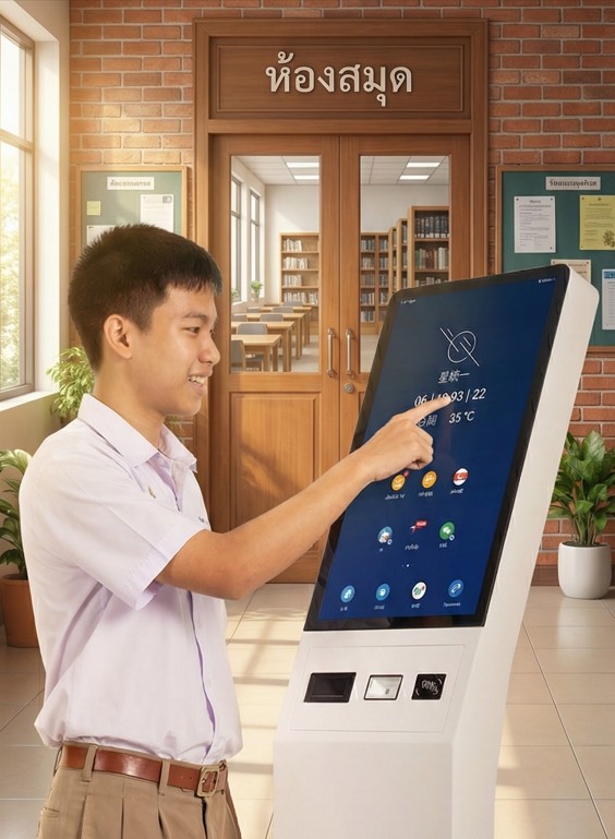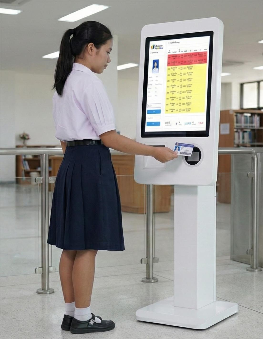 ตู้คีออส กระดานอัจฉริยะ หรือ interactive board เครื่องอ่านบาร์โค้ด เครื่องอ่าน RFID กล้องถ่ายภาพ เครื่องแสกนภาพ เป็นต้น