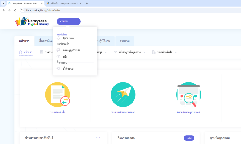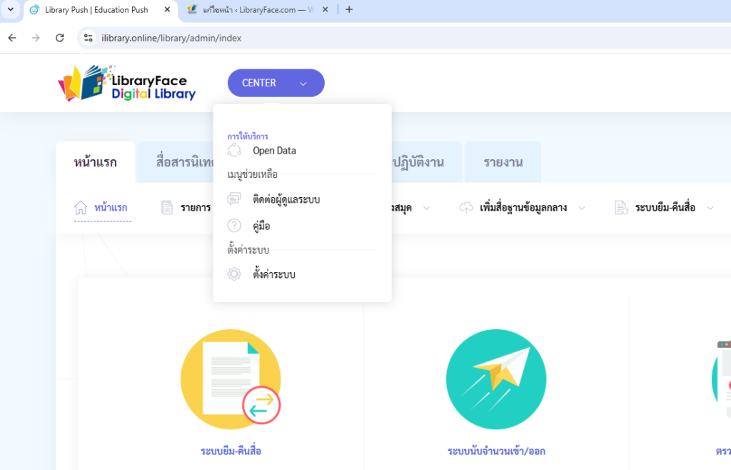 • เข้าไปที่ CENTER ที่อยู่ด้านบน