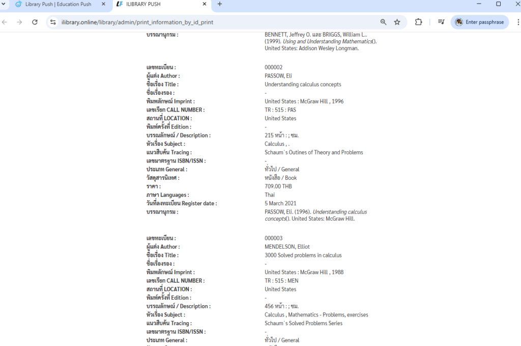 – ระบบห้องสมุด มีให้ใส่ ทั้ง Dewey , LC. , NLM.