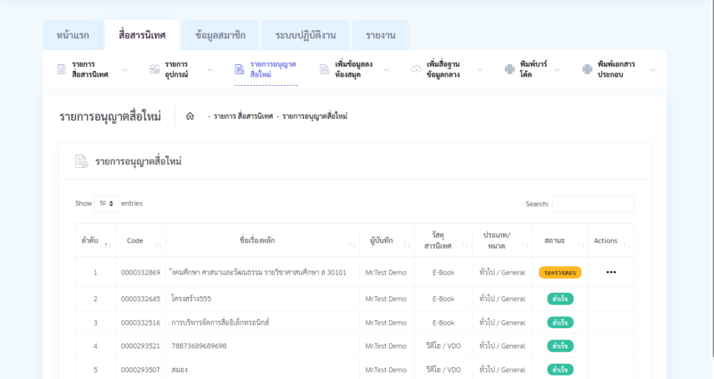 – จะเห็นหน้ารายการสื่อที่เข้ามาขออนุญาต