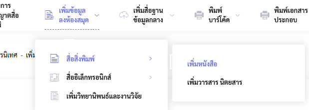 - เลือก สื่อสิ่งพิมพ์ และเลือก เพิ่มหนังสือ