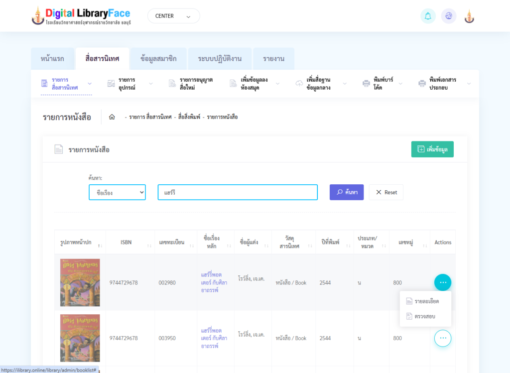 - เลือก รายการหนังสือ