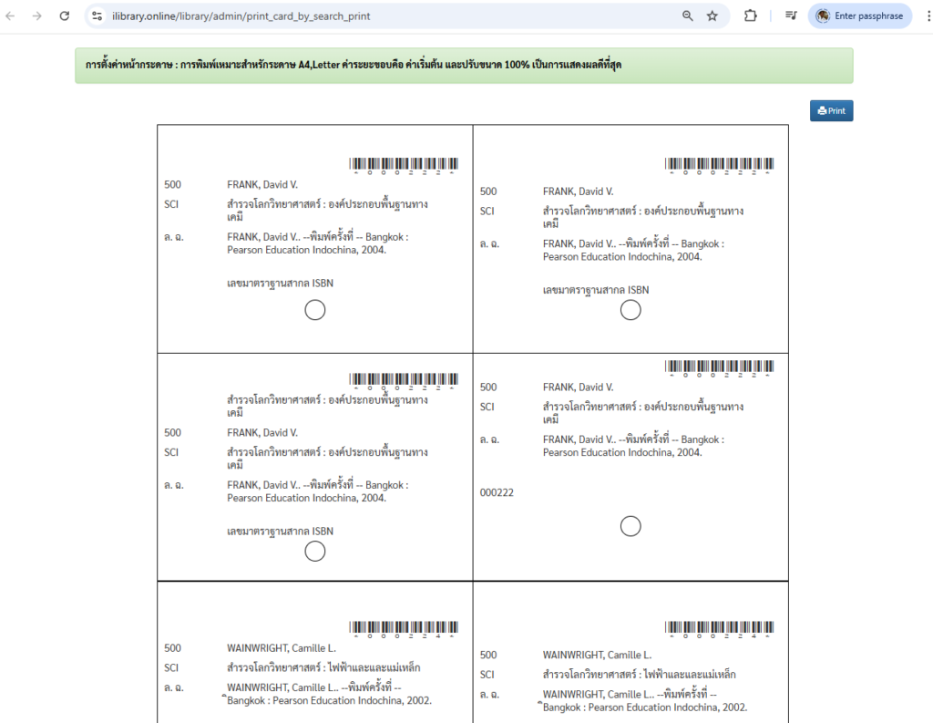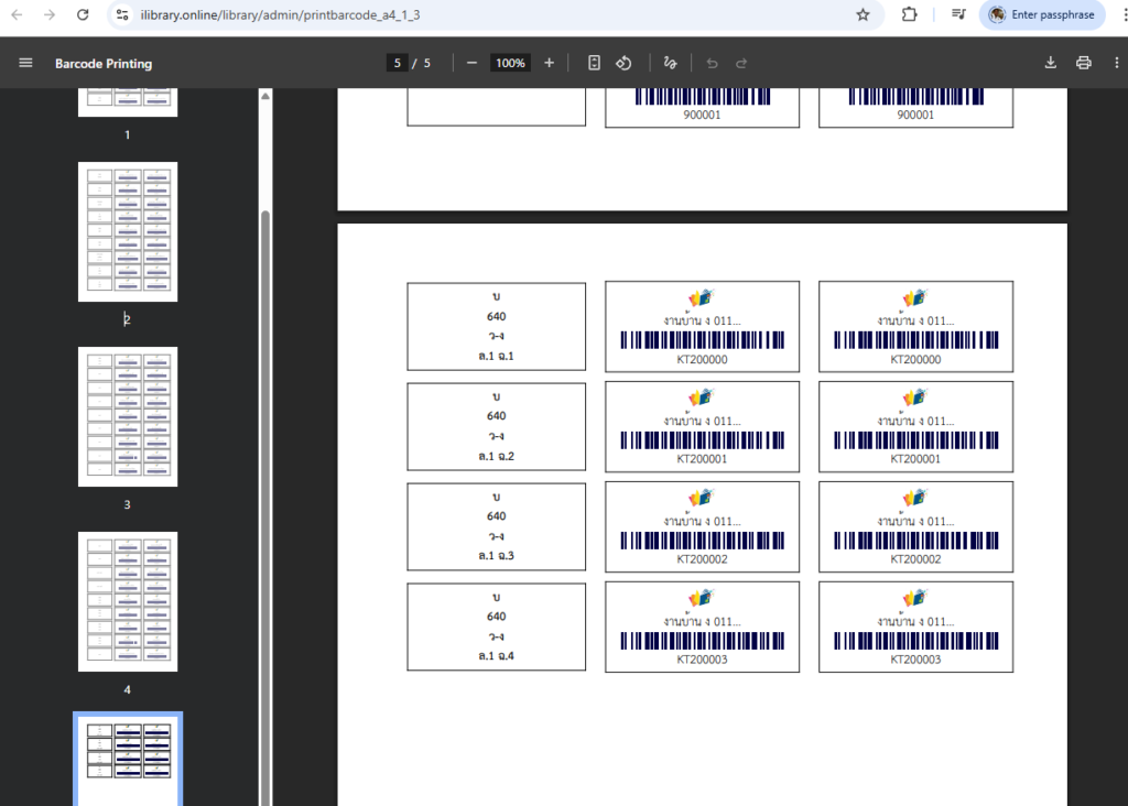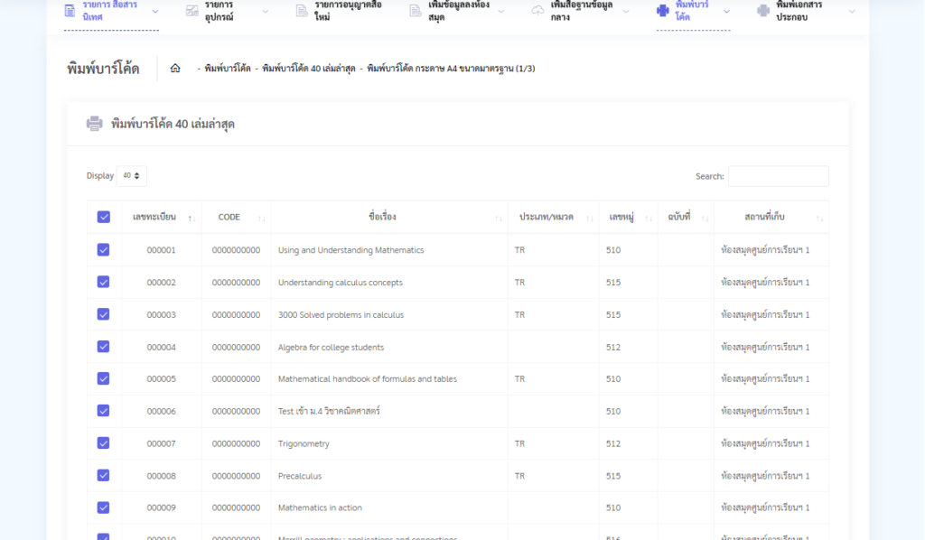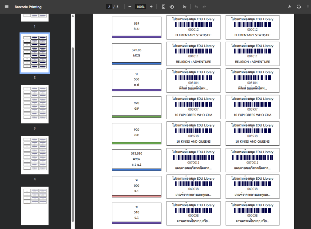 - พิมพ์แถบบาร์โค้ดติดสันหนังสือ