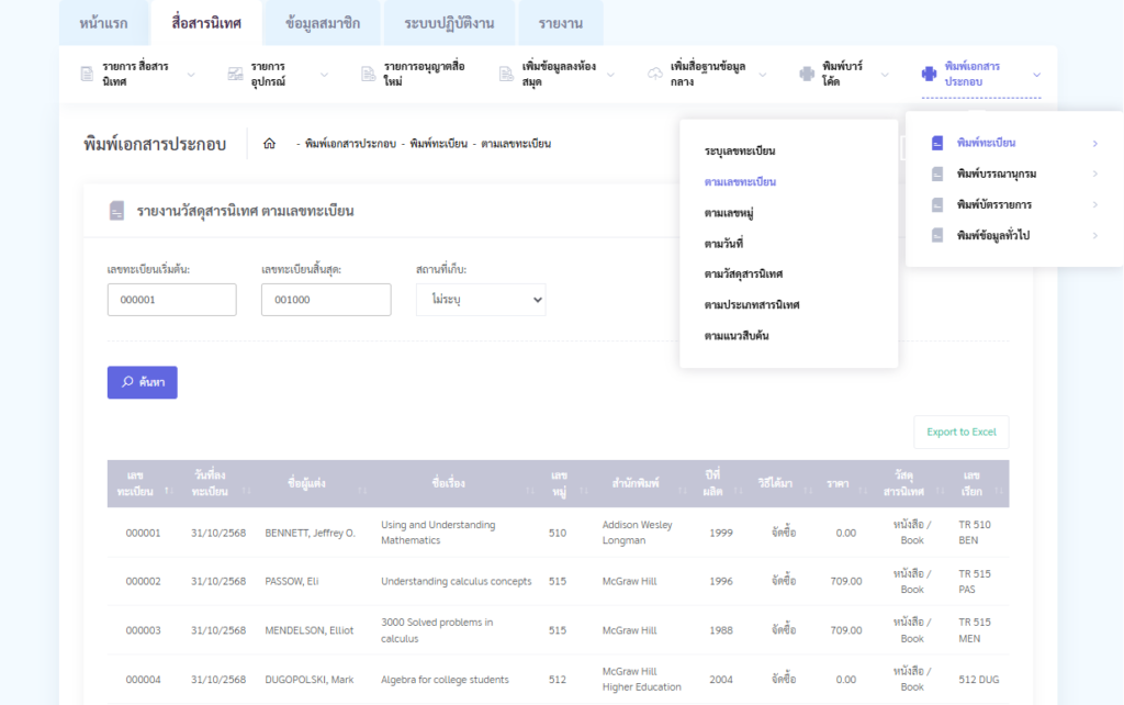 – สามารถออกเป็น Excel ได้